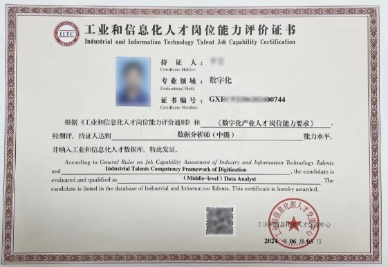 证书由工业和信息化部人才交流中心颁发,在行业内具有认可度,是个人数据分析能力的有效证明,能为求职、晋升提供有力支持,不少企业在招聘相关岗位时会参考该认证。