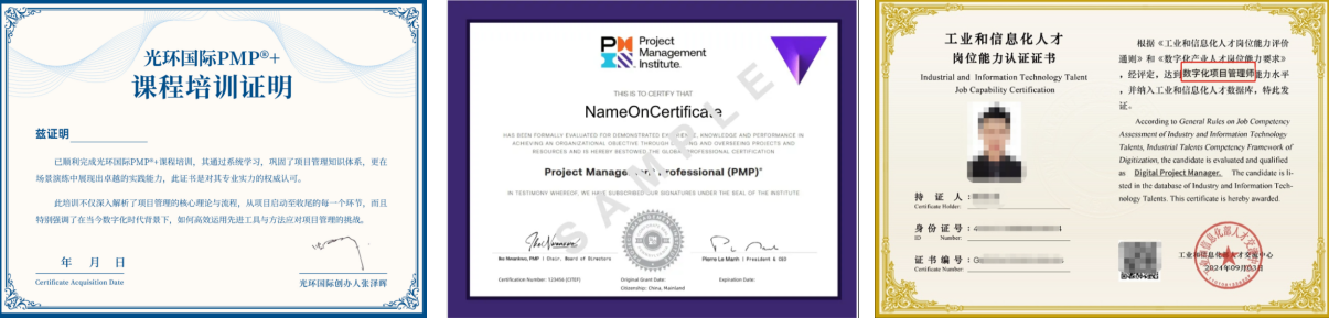 光环国际的PgMP项目集管理国际认证,由美国项目管理协会(PMI)颁发,全球认可度高,以《项目集管理标准》为依据,是项目管理高端领域的统一规范认证。
